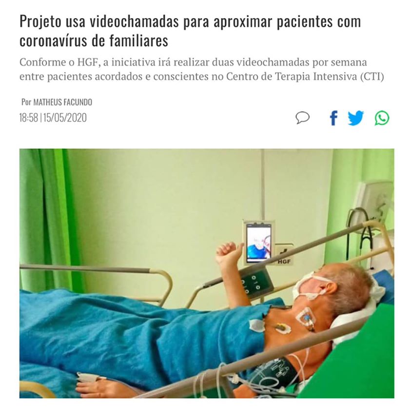 Um deles é o Hospital Geral de Fortaleza (HGF). Situado em suporte de soro, um tablet aproxima sorrisos que a internação distanciou. O nome do projeto não poderia ser mais apropriado: “Coração”. Texto completo em https://bit.ly/3cKGRMF