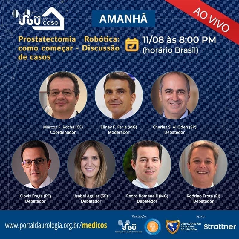 Amanhã, às 20h, Marcos Flávio Rocha coordenará um evento online sobre prostatectomia robótica. O encontro também receberá outras referências nacionais nos procedimentos cirúrgicos minimamente invasivos.