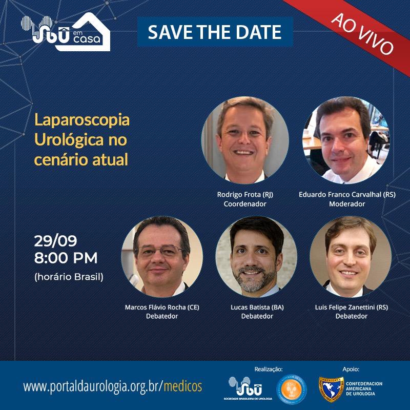 Marcos Flávio Rocha será um dos debatedores do evento “Laparoscopia urológica no cenário atual”. O encontro, que destaca os procedimentos minimamente invasivos, será realizado amanhã (29/09), às 20h, e terá transmissão ao vivo: www.portaldaurologia.org.br/medicos. Promovido pela Sociedade Brasileira de Urologia (SBU), a iniciativa conta com o apoio da Confederación Americana de Urología.