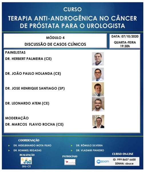 Hoje, Marcos Flávio Rocha foi moderador de um curso sobre terapia antiandrogênica no câncer de próstata. O objetivo desse tratamento é reduzir os níveis de hormônios masculinos. Estudos clínicos indicam que essa terapia pode ampliar a sobrevida de pacientes com câncer de próstata avançado.