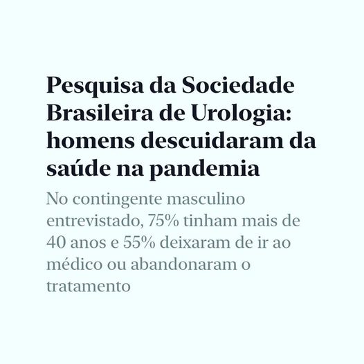 A campanha Novembro Azul, que visa conscientizar sobre a importância da prevenção para o câncer de próstata, encontrou desafios extras nesse ano. Além de propagar a necessidade da consulta urológica para o público que não a realizada regularmente, também temos de resgatar quem estava fazendo tratamento e o abandonou. Nesse ano, houve uma redução de 70% na realização do exame de sangue PSA, importante para a confirmação de tumor na próstata. Mais informações sobre a pesquisa estão disponíveis em https://glo.bo/36hzIl3