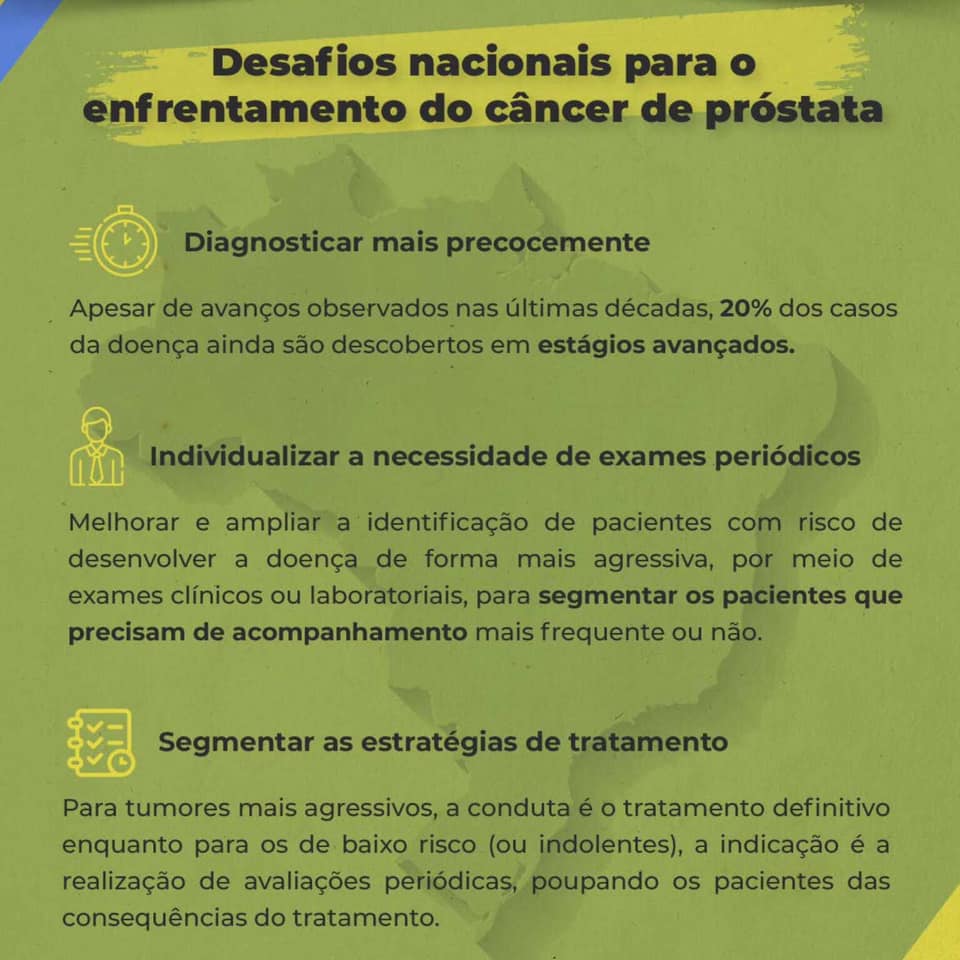 A Sociedade Brasileira de Urologia (SBU) e a Sociedade Brasileira de Oncologia Clínica (SBOC) produziram, conjuntamente, uma série de infográficos sobre o câncer de próstata. As criações abordam grupos de risco; prevenção; sintomas; diagnóstico e tratamento. O material completo está disponível em http://bit.ly/34z4d5V
