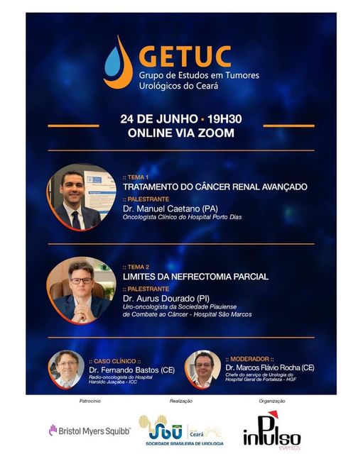Na próxima quinta (24 de junho), Marcos Flávio Rocha será moderador de um evento sobre câncer renal. Promovido pelo Getuc (Grupo de Estudos em Tumores Urológicos do Ceará) e SBU-CE (Sociedade Brasileira de Urologia – Secção Ceará), o encontro contará com palestras e debate de caso clínico.