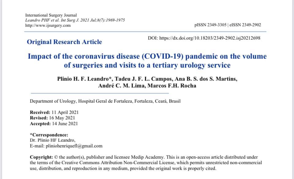 Em março do ano passado, a pandemia se impôs. Documentar essa mudança foi o objetivo do artigo que Marcos e outros colegas do departamento elaboraram. Publicado no International Surgery Journal, o estudo pode ser acessado através do link https://bit.ly/2Vbgj3o.