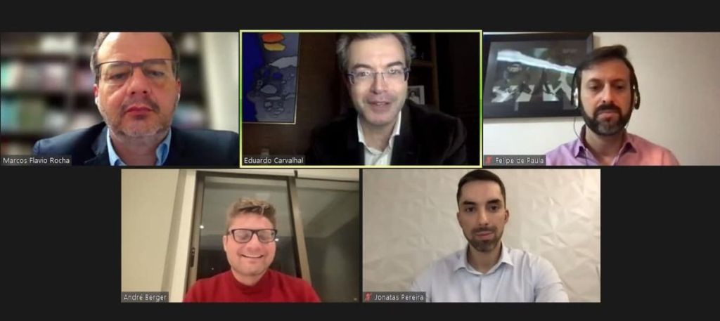 Na imagem, os debatedores do evento, que participaram do Ceará (Marcos Flávio Rocha), EUA (André Berger), Paraná (Jonatas Pereira), Rio Grande do Sul (Eduardo Carvalhal) e São Paulo (Felipe de Paula).