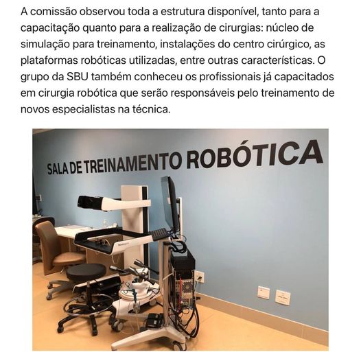 Como coordenador da comissão de certificação em cirurgia robótica da Sociedade Brasileira de Urologia (SBU), Marcos Flávio Rocha esteve em São Paulo-SP, para credenciar dois hospitais em cirurgia assistida por robô (Nove de Julho e São Luiz). Nas visitas, a equipe da SBU conhece a infraestrutura e o corpo técnico responsável pela coordenação da capacitação em cirurgia robótica.
