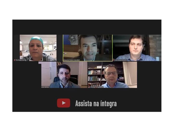 Marcos Flávio Rocha contribuiu para o debate científico proposto pelo encontro. Na imagem, uma das suas participações. Nesse encontro, foi debatido a “Laparoscopia Urológica no cenário atual”. No site da SBU, você encontra links para essa e outras edições do “SBU em Casa”.