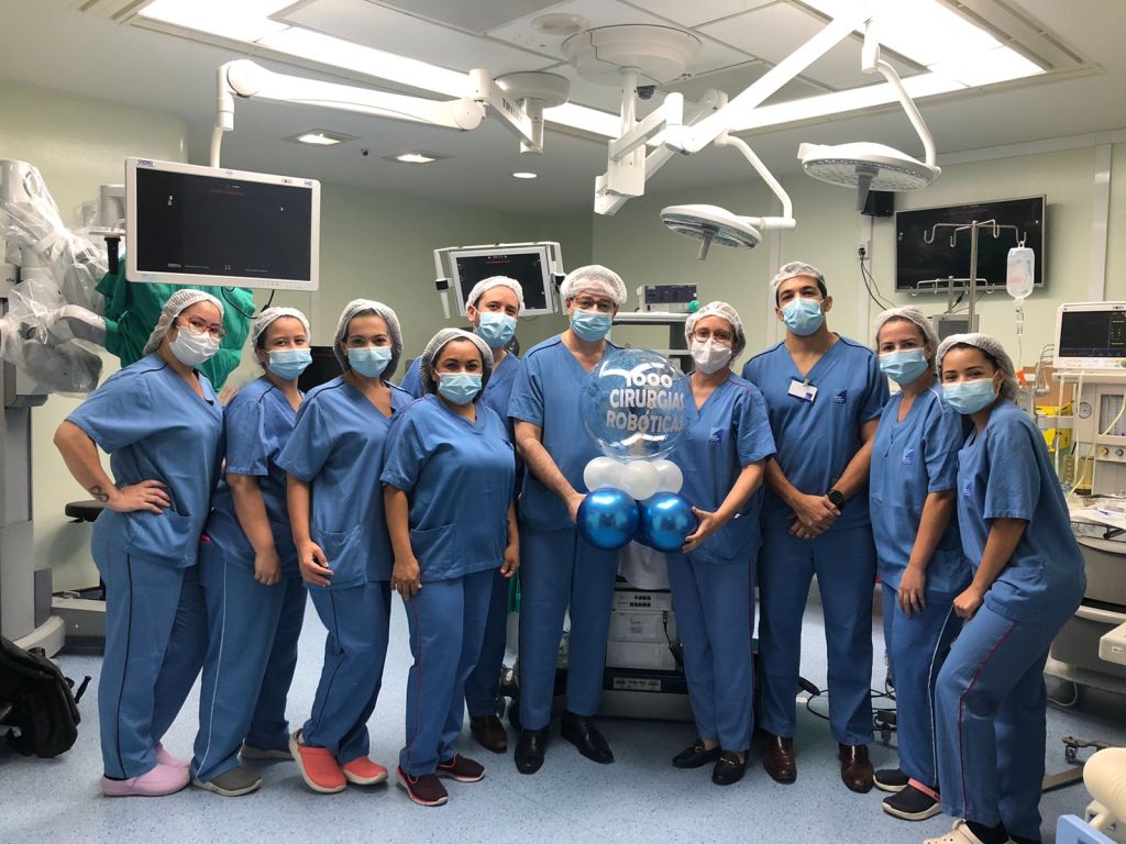Marcos Flávio Rocha, coordenador médico do setor de cirurgia robótica do hospital, agradece à equipe pela competência, dedicação e comprometimento. Para atender a demanda, o grupo permanece em constante expansão. No momento, há cirurgiões, anestesistas e enfermeiras participando de capacitação em cirurgia robótica.