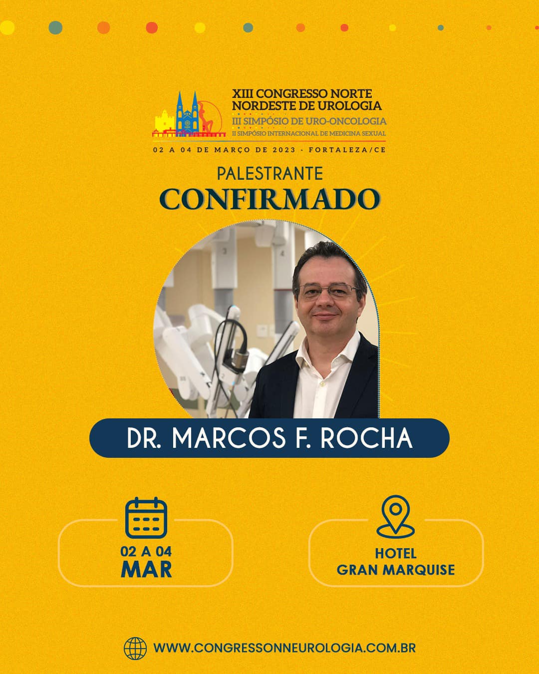 Começa hoje, no Hotel Gran Marquise (Fortaleza-CE), o XIII Congresso Norte Nordeste de Urologia. Marcos Flávio Rocha participará ativamente da programação científica. Abordará, em módulos distintos, temas como câncer de bexiga, tumor na próstata de alto risco, dentre outros.